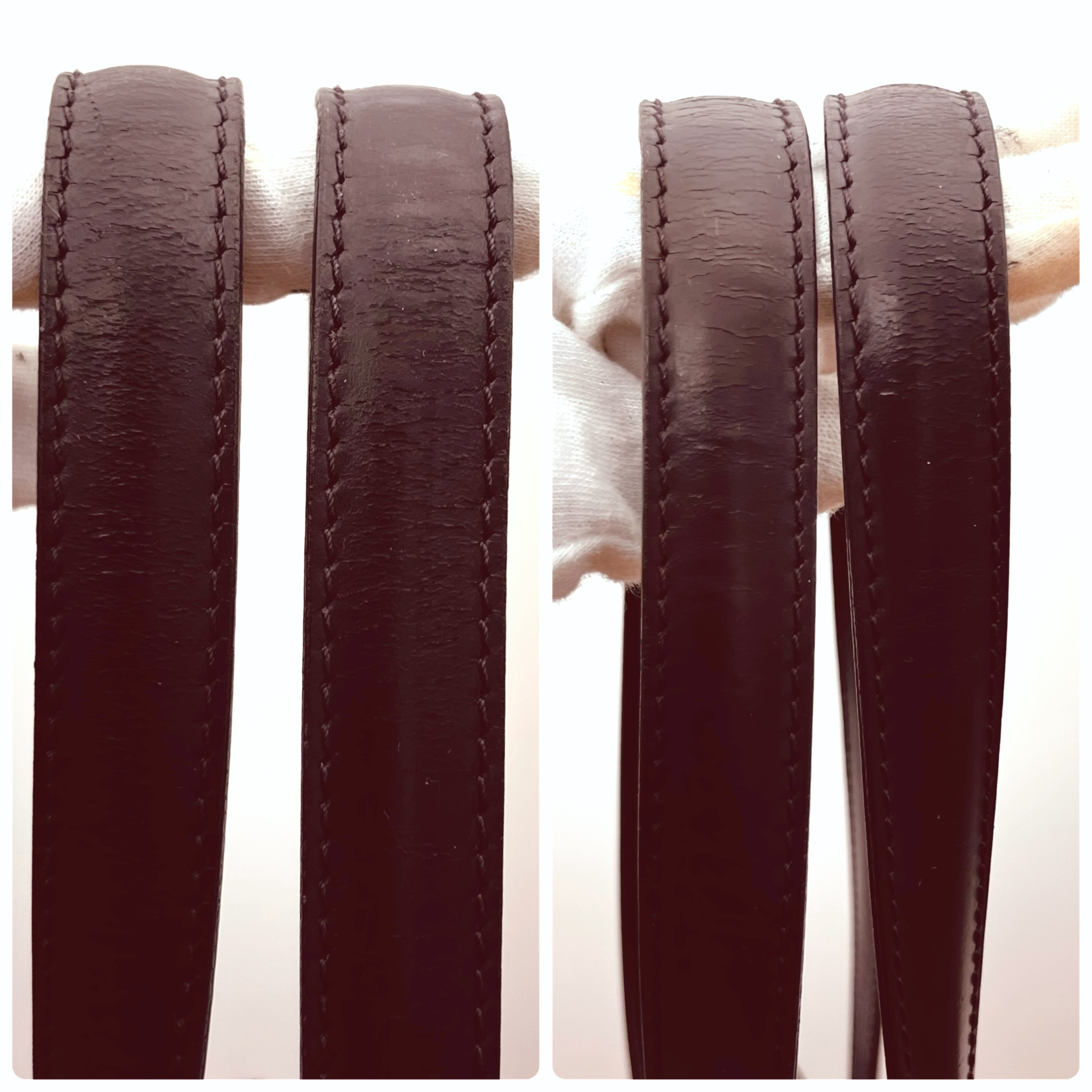 •ショルダー革の表面的な微細なひび、わずかに角スレ、目立たない1センチくらいの小さな裂けが3箇所ありますが(写真参照)、使用に問題はありません。