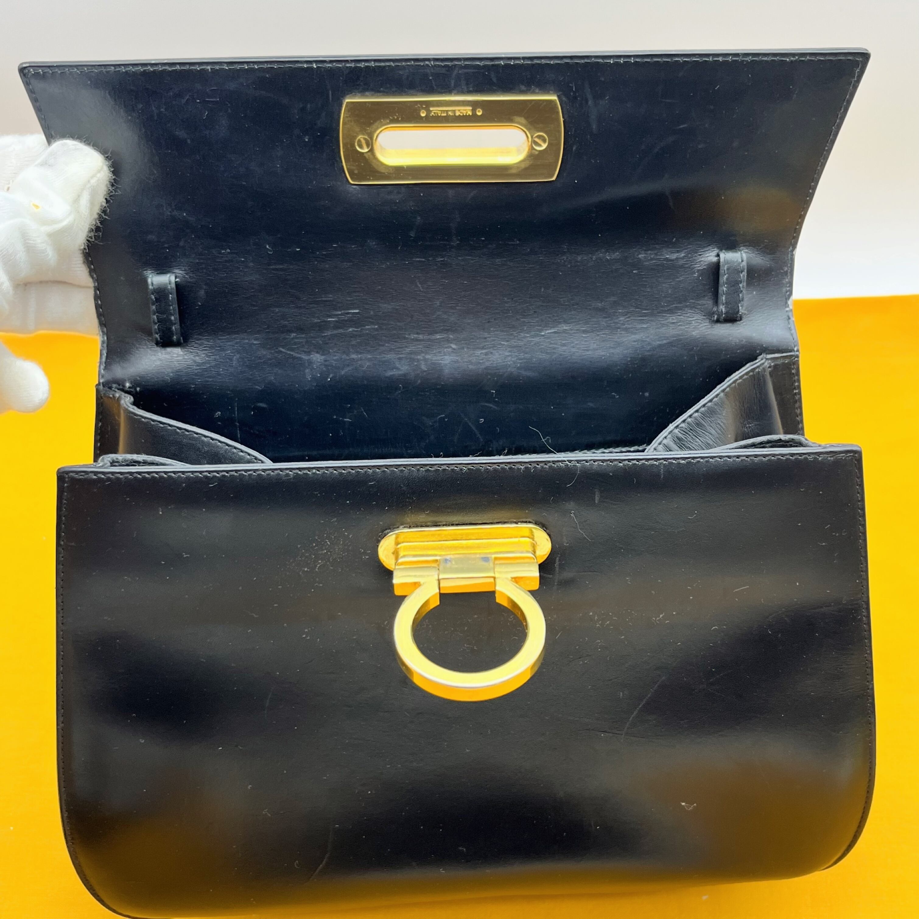 高級感のある黒い革がフェラガモらしいお品物です。